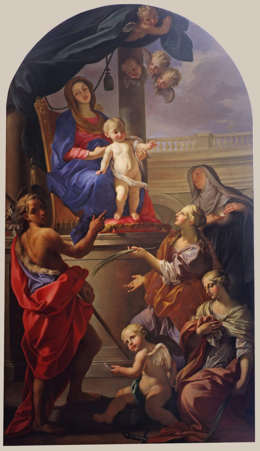 - Cornice monumentale in legno intagliato e dipinto preesistente alla tela