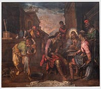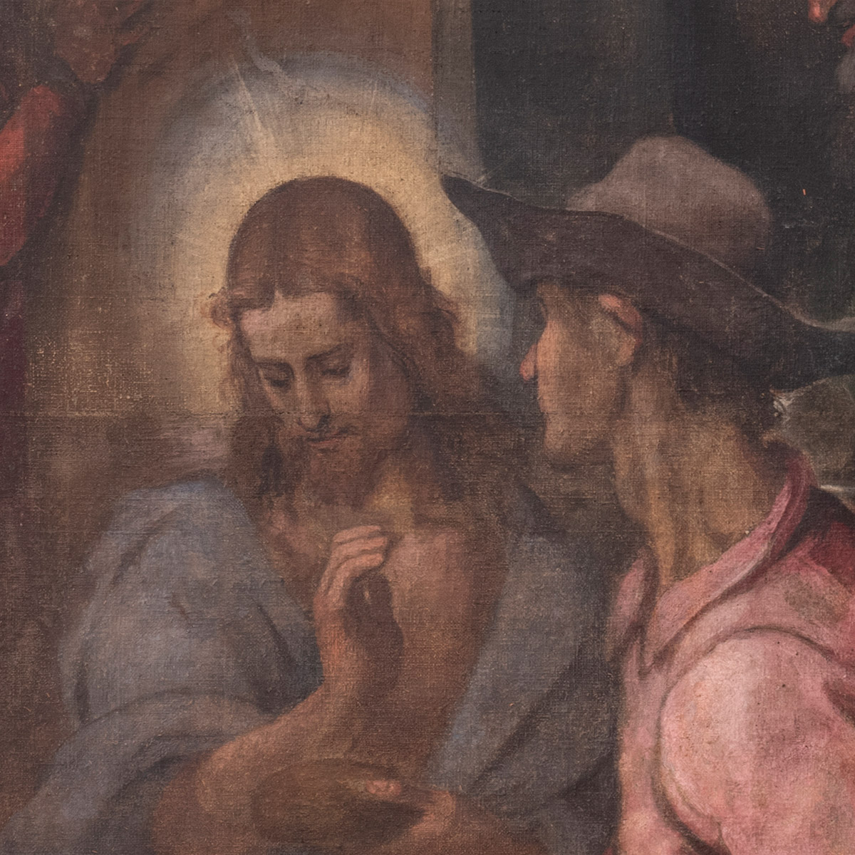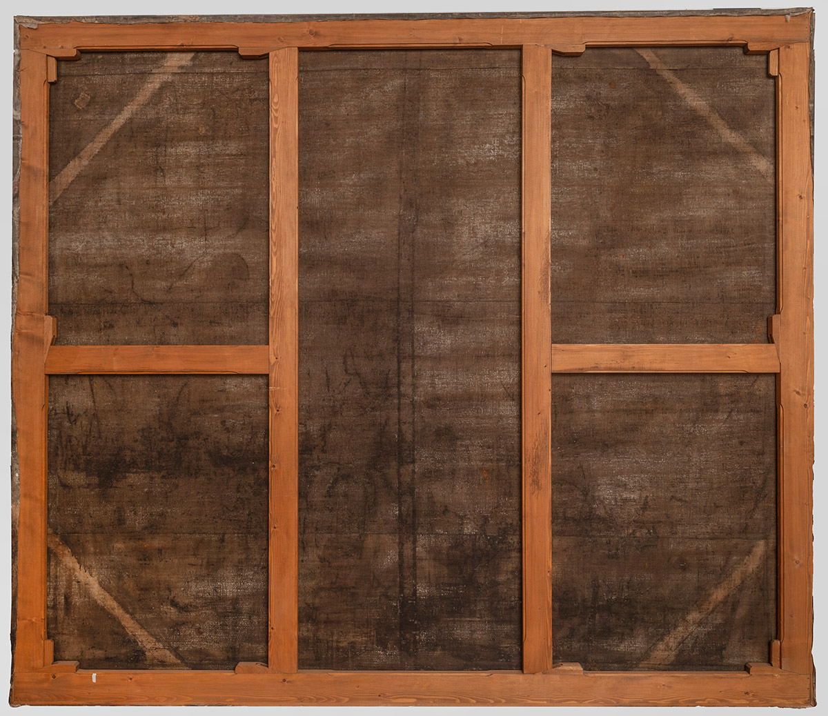 L'attuale nuovo telaio, realizzato nel restauro del 2002, ha uno spessore di 4 centimetri ed una larghezza di 12 centimetri che nasconde alla vista la traccia dei listelli del telaio originale che erano più stretti. Il profilo perimetrale originale del supporto è visibile pressoché su tutti lati e l'osservazione del filato lungo i margini dove non è stato impregnato dai vari materiali consolidanti, della composizione dei teli e della loro disposizione, suggerisce che il supporto è stato concepito per avere un peso contenuto considerate le sue dimensioni. Sulla metà inferiore della tela si osservano i segni di un abbozzo che corrisponde alla prima impostazione del disegno che il pittore ha eseguito a pennello direttamente sul fronte della tela o sulla preparazione utilizzando un colore molto scuro di tono freddo con un medium che è stato assorbito dal filato lasciando la sua impronta sul retro.