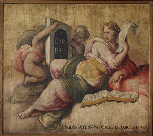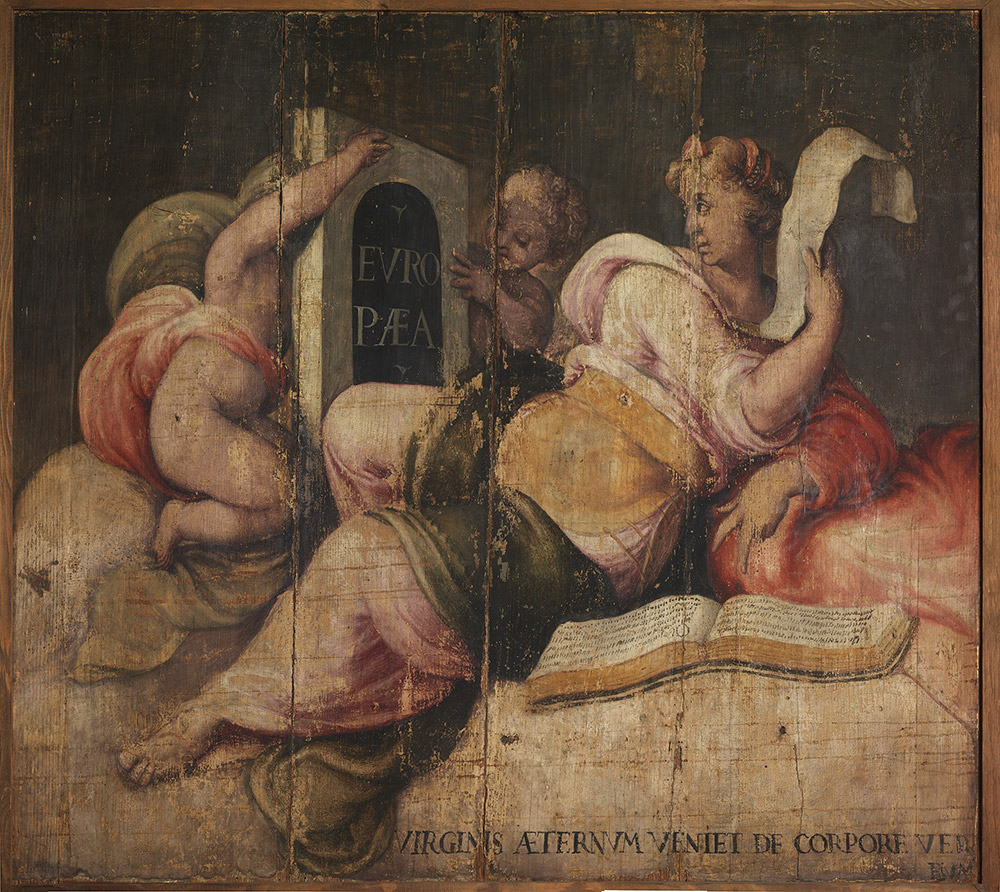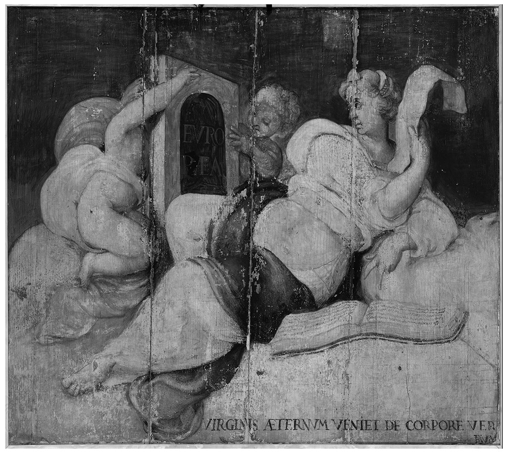 - In origine era uno dei quattro pannelli che ornavano il soffitto del palazzo Andrea della Valle a Roma