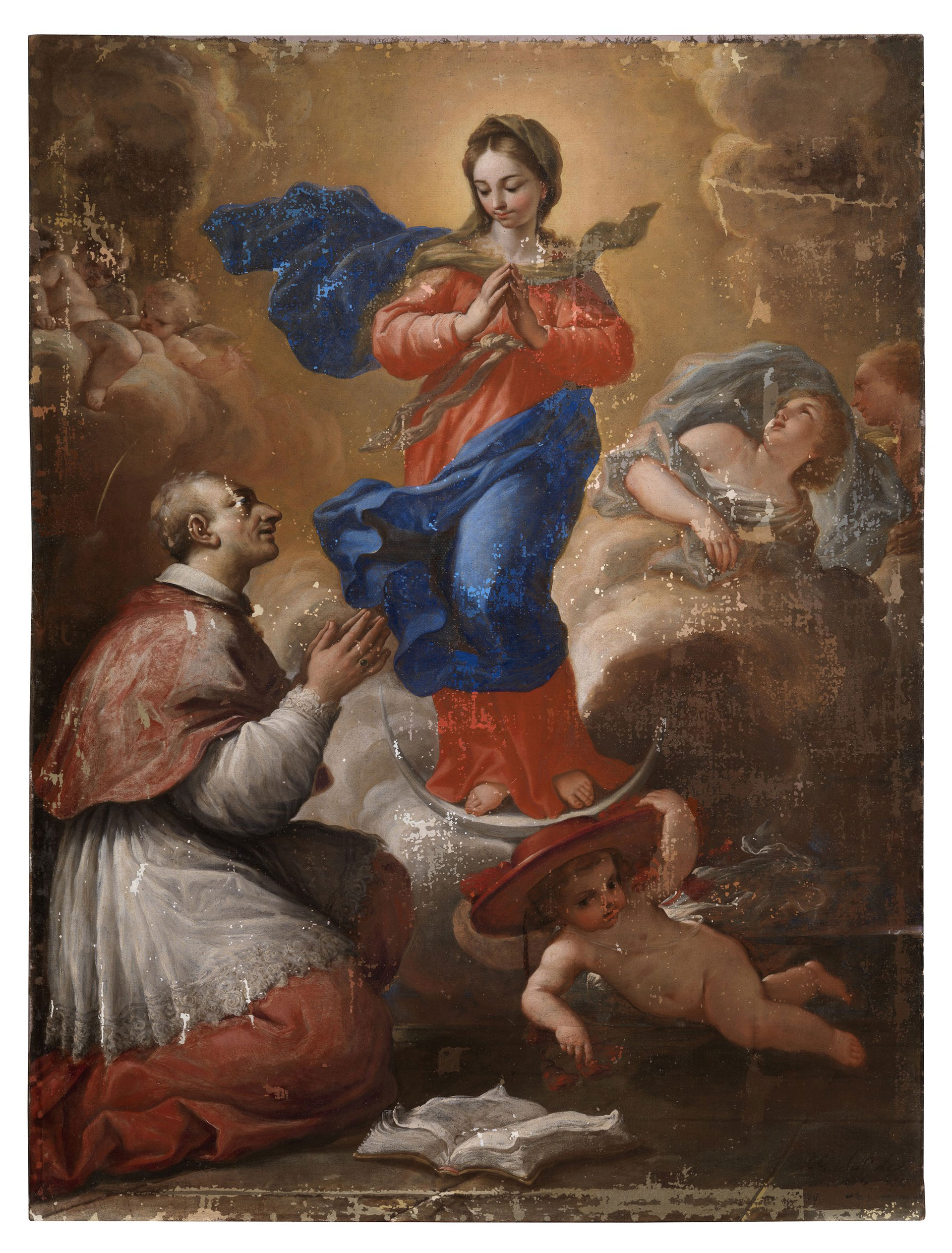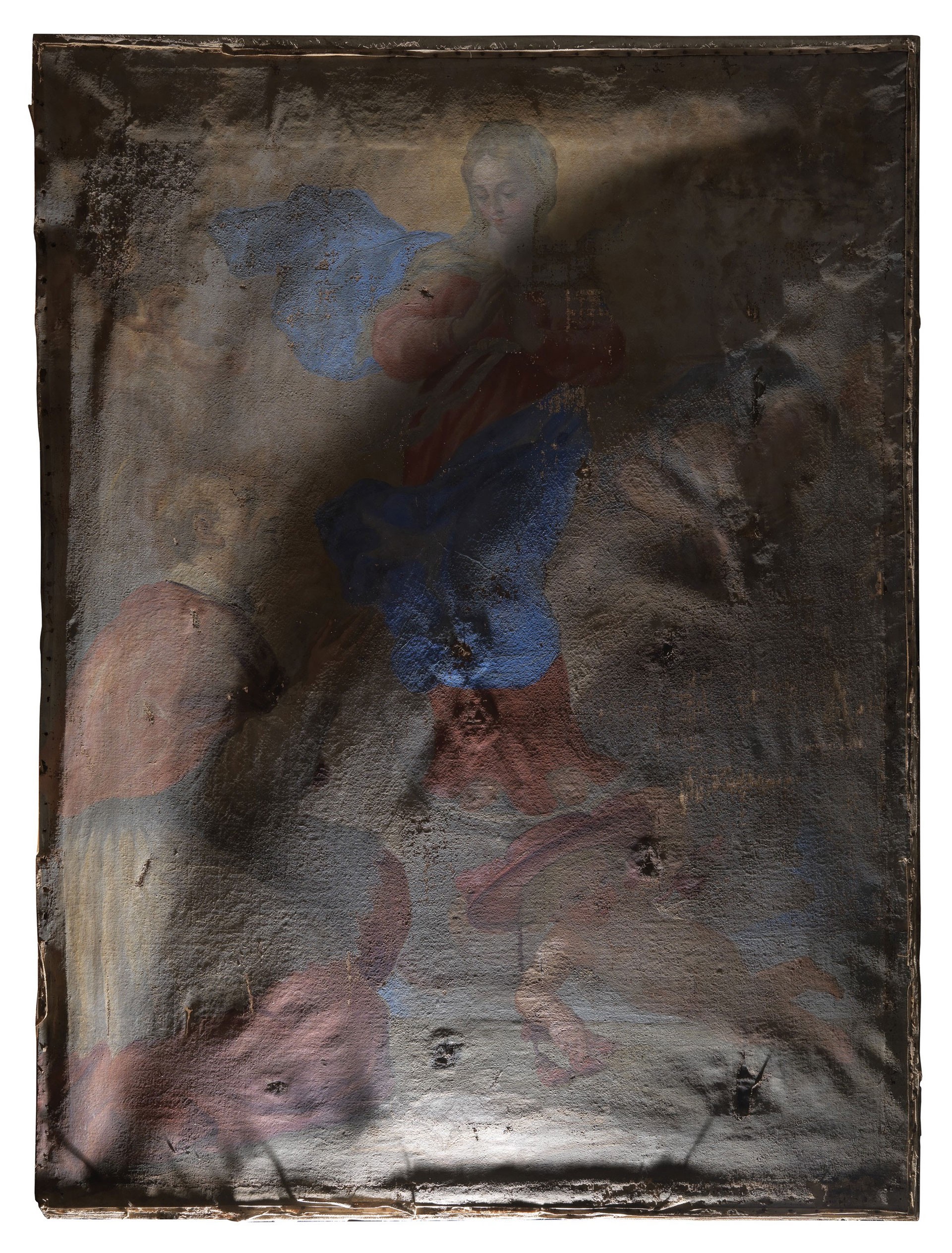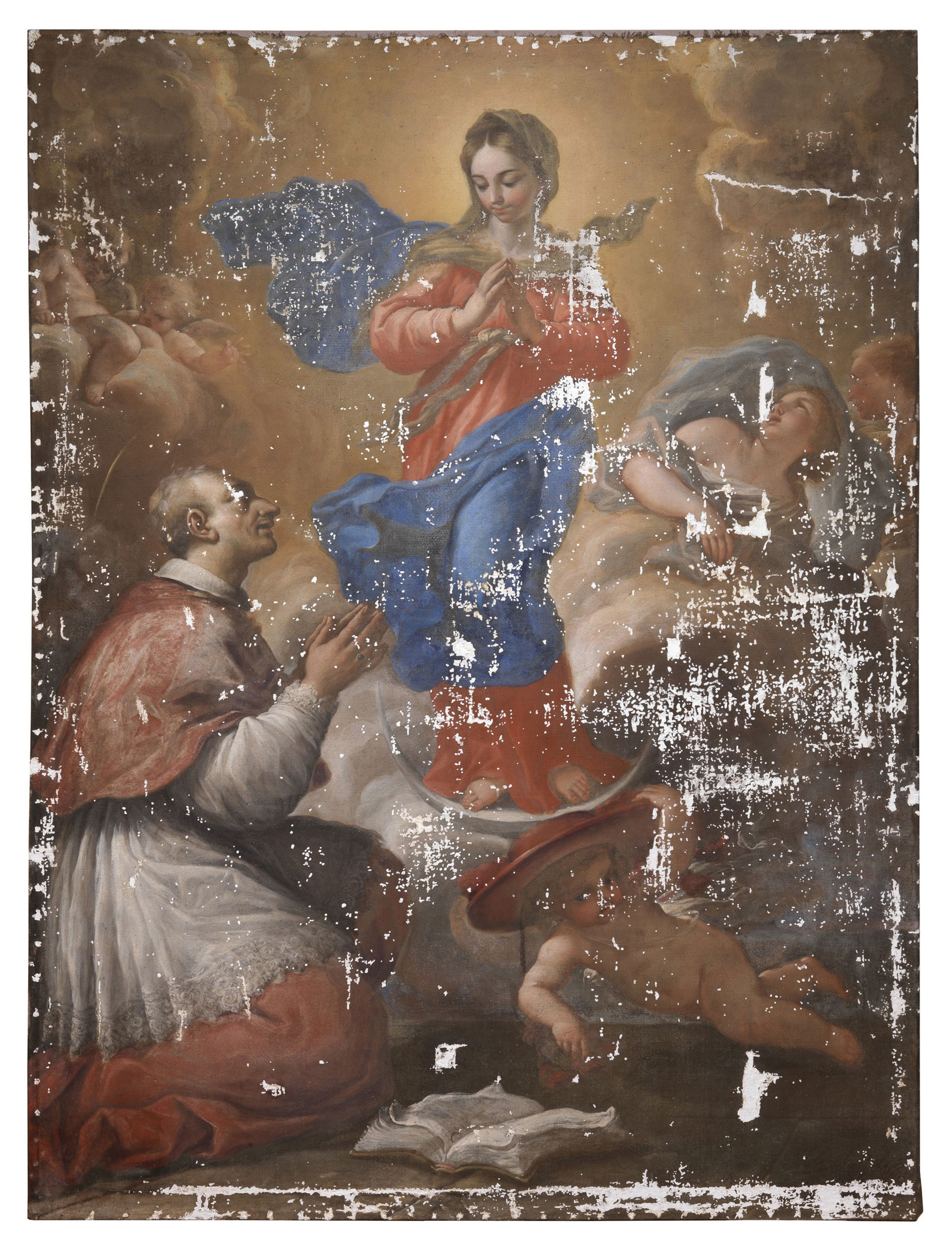 Insieme durante il restauro nelle fasi di stuccatura e di restauro pittorico
