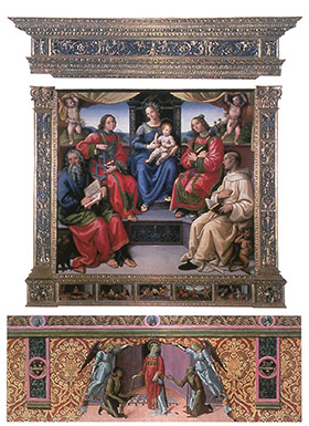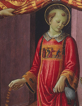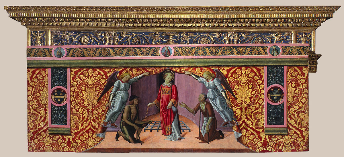 Agnolo di Domenico di donnino del Mazziere, San Lorenzo elemosiniere, paliotto dell'altare della cappella Segni. Insieme dopo il restauro